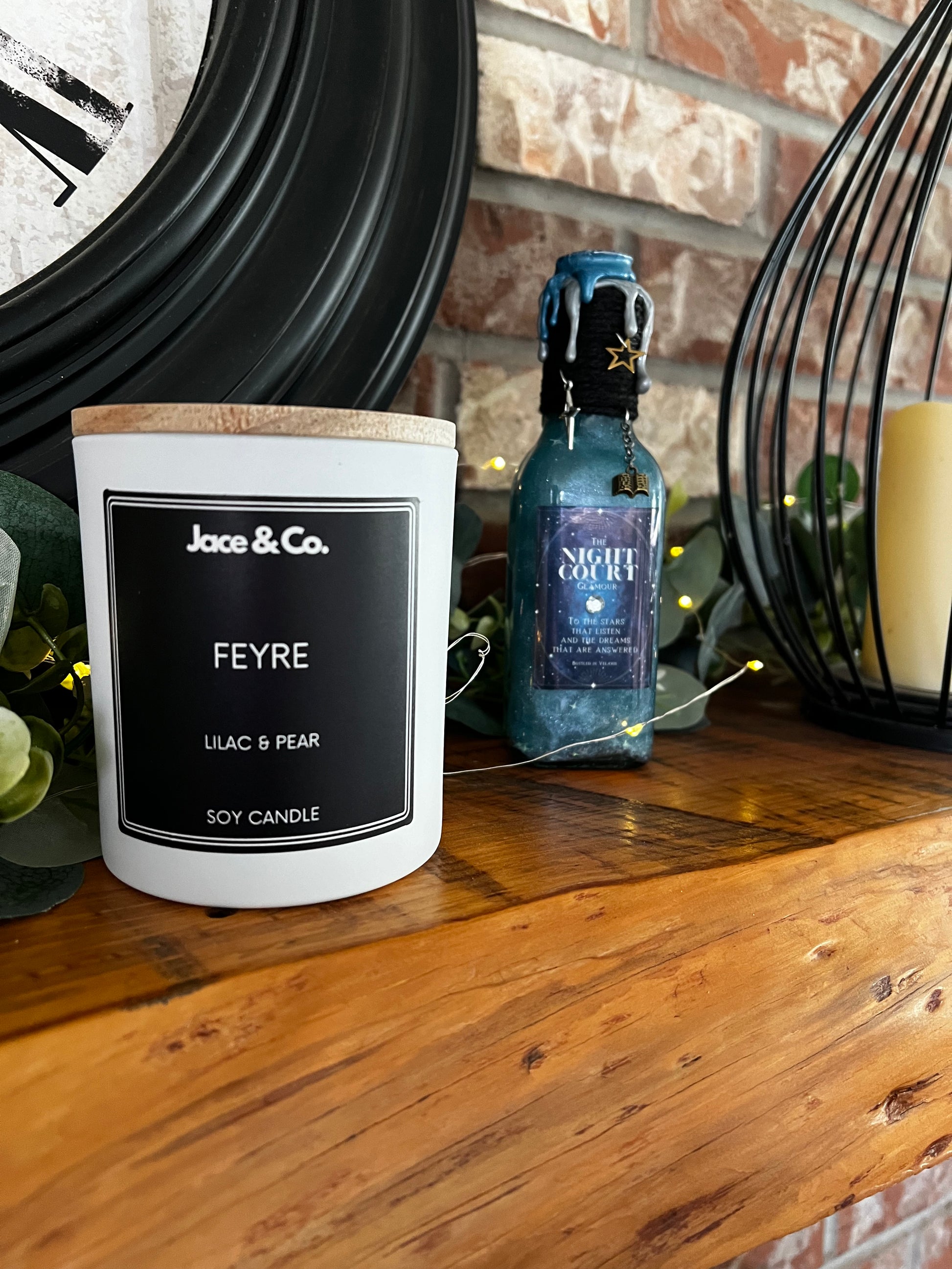 Our High Lady of the Night Court, Feyre, captures the serene beauty of a field of lilacs in peak bloom with the lush green scent of an orchard with heady notes of pear blended with light musk, wood, and just a touch of sweetness. This floral fragrance contains notes of green leaves, lily of the valley, and honeysuckle blossoms enhance the alluring bouquet of lilacs and pear.